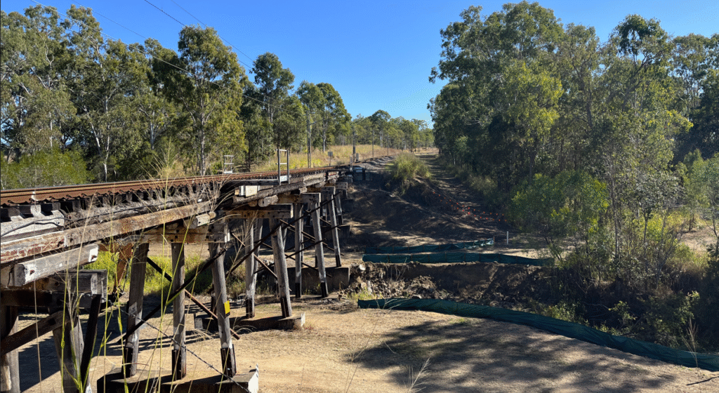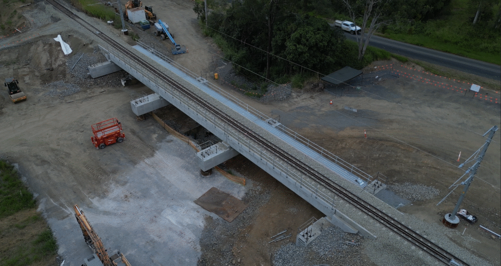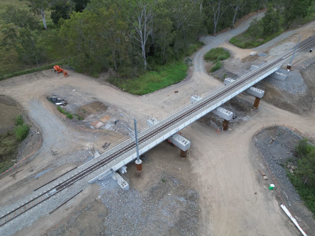 As part of Queensland Rail’s North Coast Line Capacity Improvement Project, three ageing timber bridges in the Berajondo locality were replaced to improve the efficiency and safety of the regional rail network.